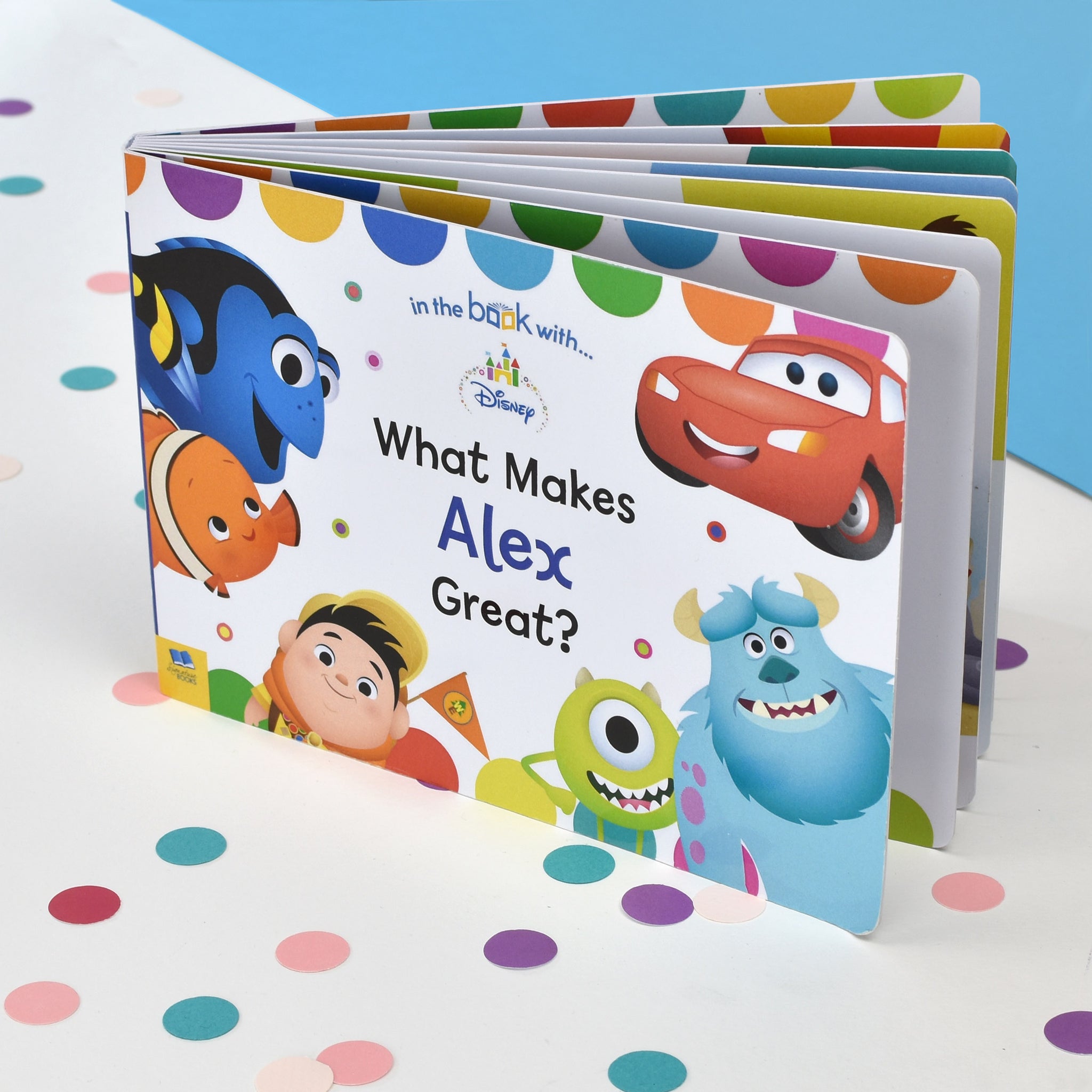 Some of the best-loved Disney characters have been given cute, toddler-friendly makeovers in this simple yet fun board book that is personalised with the recipient's name. Cute characters from such films as Toy Story, Monsters Inc, and Finding Nemo all appear in 'What Makes Me Great?', as your little one learns about the positive attributes of each Disney hero. The child's name appears throughout the book, as well as on the front cover, and a personal message can be added to the opening page. As a board book, the pages inside 'What Makes Me Great?' have been especially designed so that little hands can navigate their way from start to finish with minimal assistance. A fun, colourful book with a unique style, 'What Makes Me Great?' is a lovely way to introduce little ones to the world of Disney.