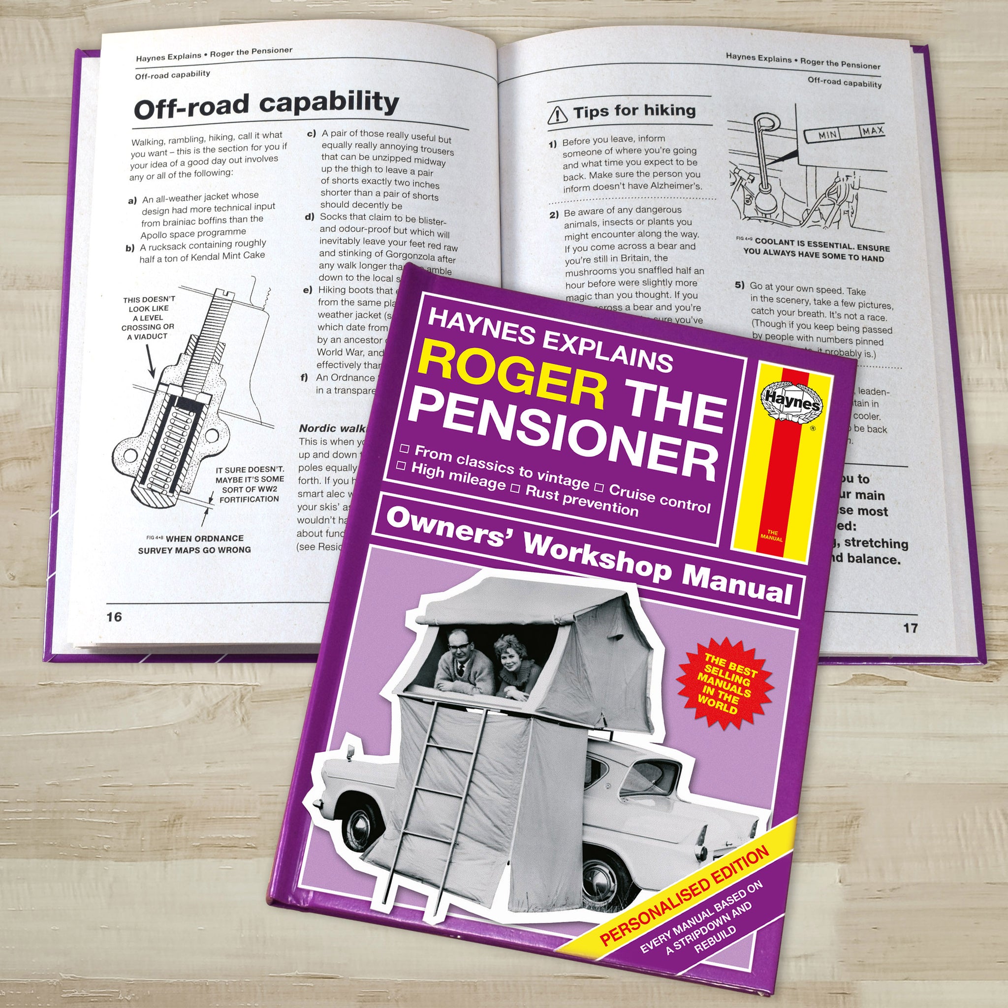 From classics to vintage, cruise control, high mileage, and rust prevention, this owner's workshop manual will keep your pensioner in tip top condition. The perfect retirement gift, this manual is personalized throughout with the recipient's name at the top of each page and can include a message from you (cheeky or otherwise) on the opening page. Entering the age of retirement should be a happy time in life, and this little manual will definitely provide a few laughs.The advantages of being a pensioner are clearly laid bare, for example 'you have nothing left to learn the hard way', unfortunately 'everything you've learned has been the hard way'.