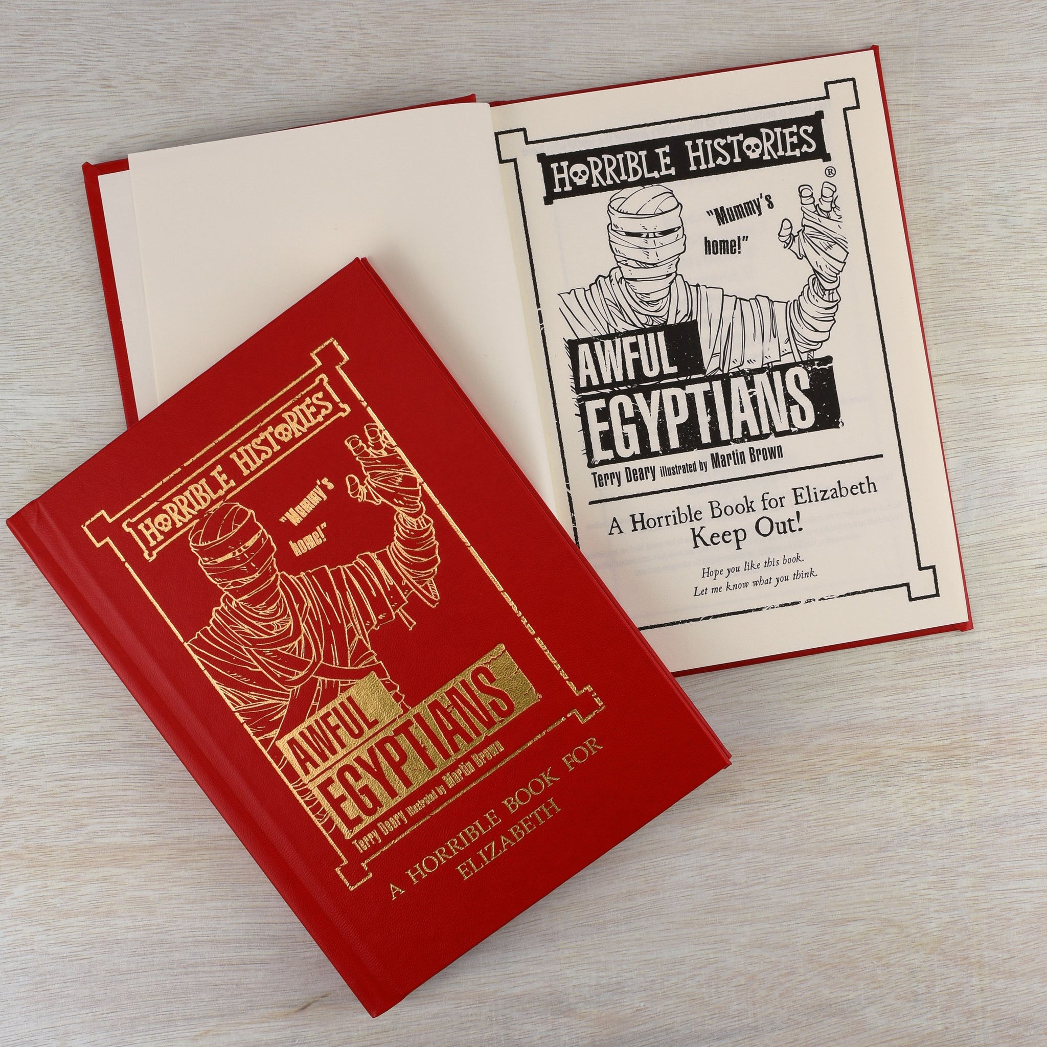 Terry Deary's 'Horrible Histories' series has entertained and educated children since the first publication back in 1993. The 'Awful Egyptians' describes one of the cruellest civilisations in history, leaving in all the grisly bits your child will love! From curses to mummification, this book is packed full of fun and gory facts. Who says learning is boring!? This book comes in a smart red leatherette finish and is personalised with the recipient's name on the front, as well as appearing on the header of each page throughout. You also have the option to add a message to the opening page.