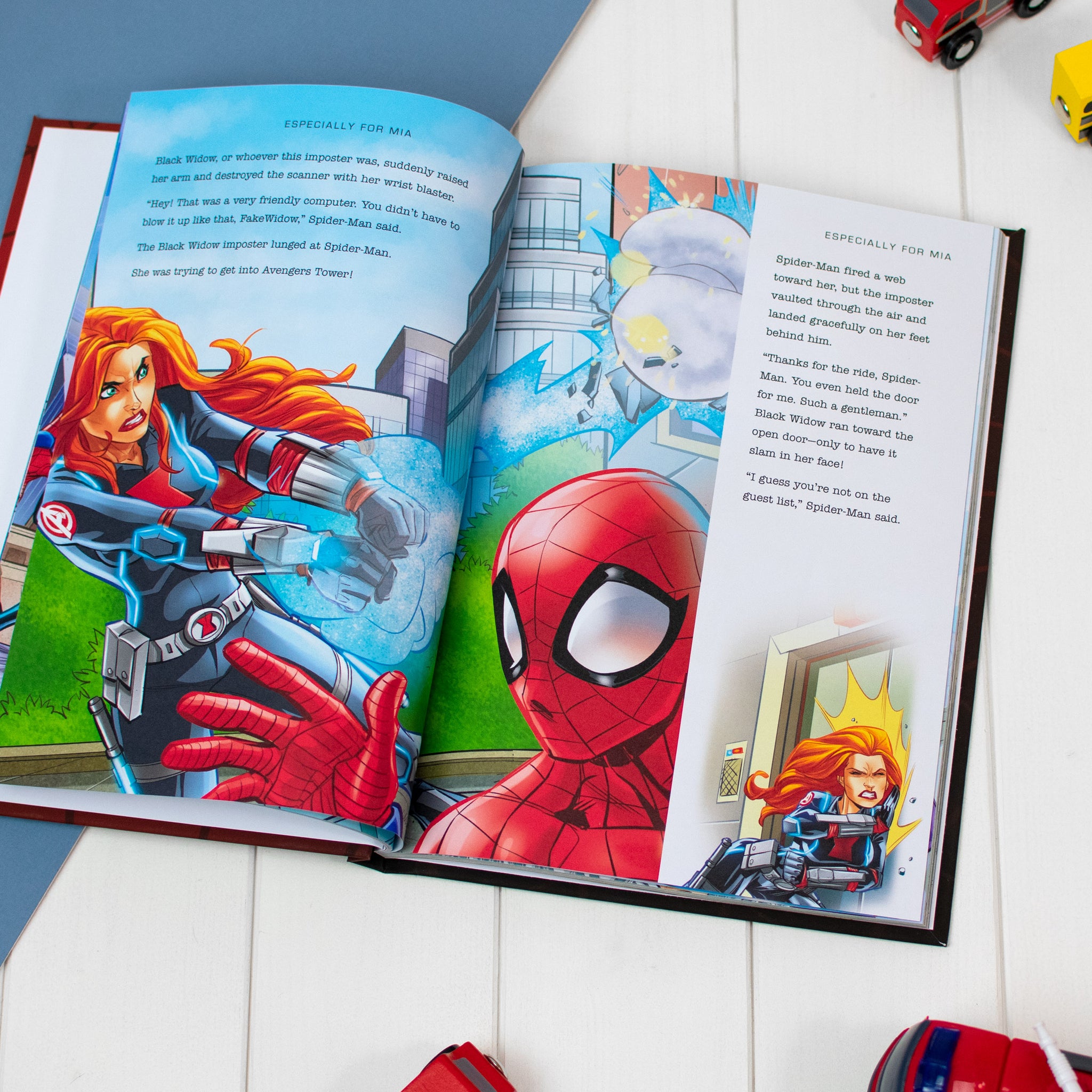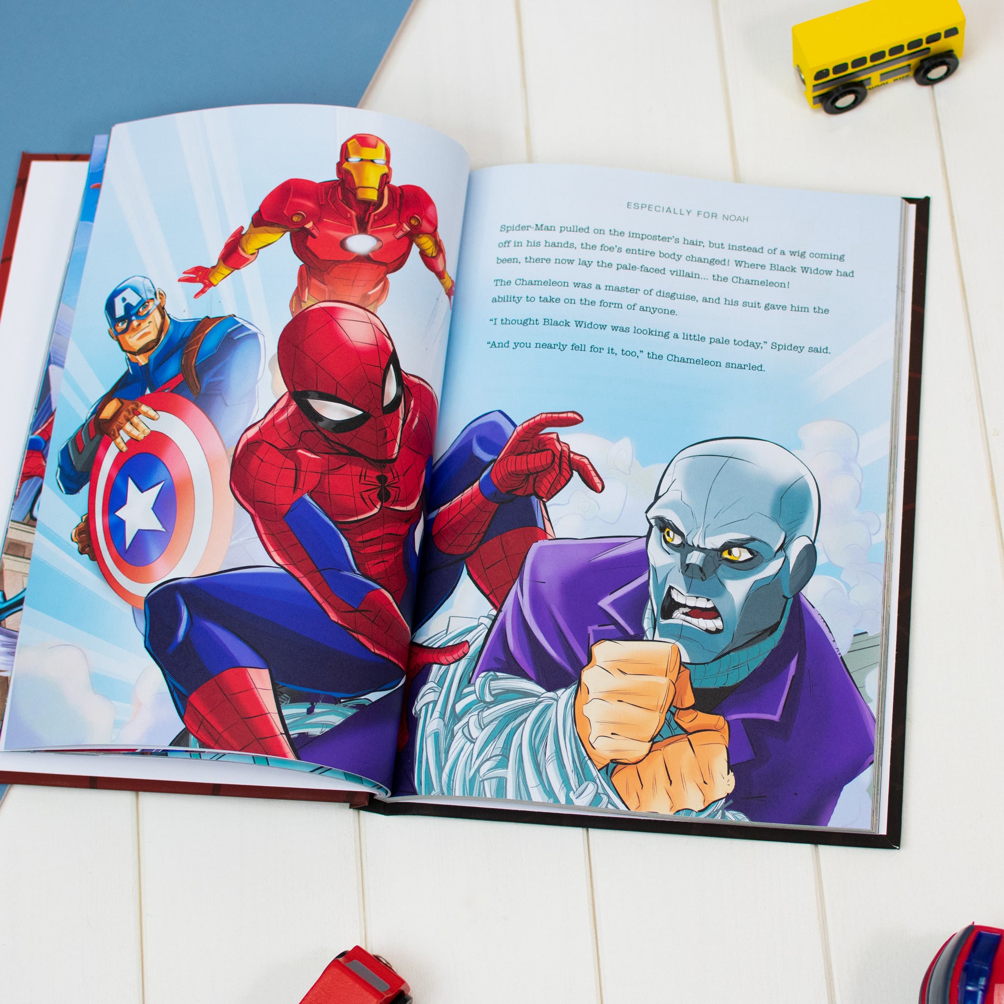 The ultimate collectable for Spider-Man fans, this unique personalised book contains six stories about the masked web-slinger, including an introduction from Spidey himself as he speaks directly to the recipient of the book! The recipient's name not only features throughout this conversation with Spider-Man, but throughout the book at the top of each page. Their name also appears on the opening page alongside a personal message. You also have the option to add your very own photo which will appear on the message page. This Spider-Man collection is available in A4 standard and A3 deluxe sizes, and bound in a leatherette cover with the iconic Spider-Man design. The cover is also embossed with the recipient's name. Each book is presented in a free gift box that is embossed with the famous Marvel brand logo.