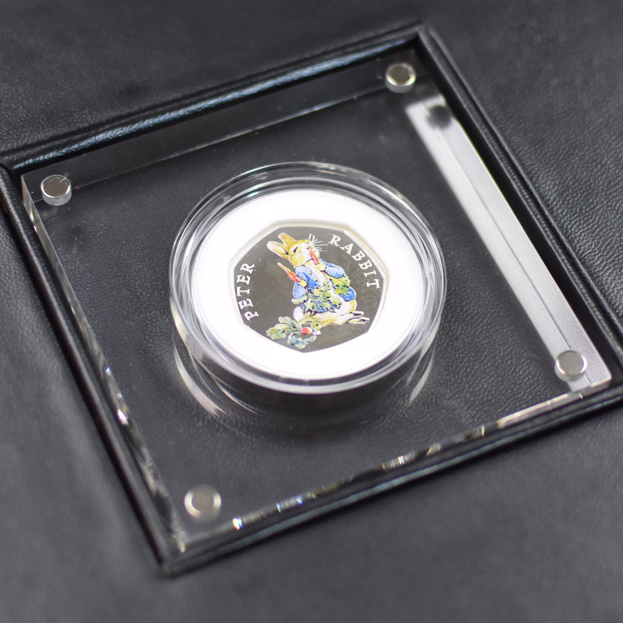 A premium gift to celebrate the works of Beatrix Potter and more specifically her most famous creation – Peter Rabbit. This deluxe box is lovingly handmade and contains a limited-edition Royal Mint 50p coin. The coin is special as it features the unmistakable figure of the mischievous rabbit who regularly raided the fruits of Mr. McGregor's garden. Additionally, the coin is silver Proofed and is one of only thousands that were struck by the Royal Mint. A fantastic gift and collectable that is made all the more unique with the personalisation of the lid of the box. The front of the lid displays the recipient's name in high quality silver foil embossing, and when the lid is removed from the box they will see their name printed on the inside of it alongside a personal message. A gift as remarkable as the Beatrix Potter herself and the everlasting tales had written.