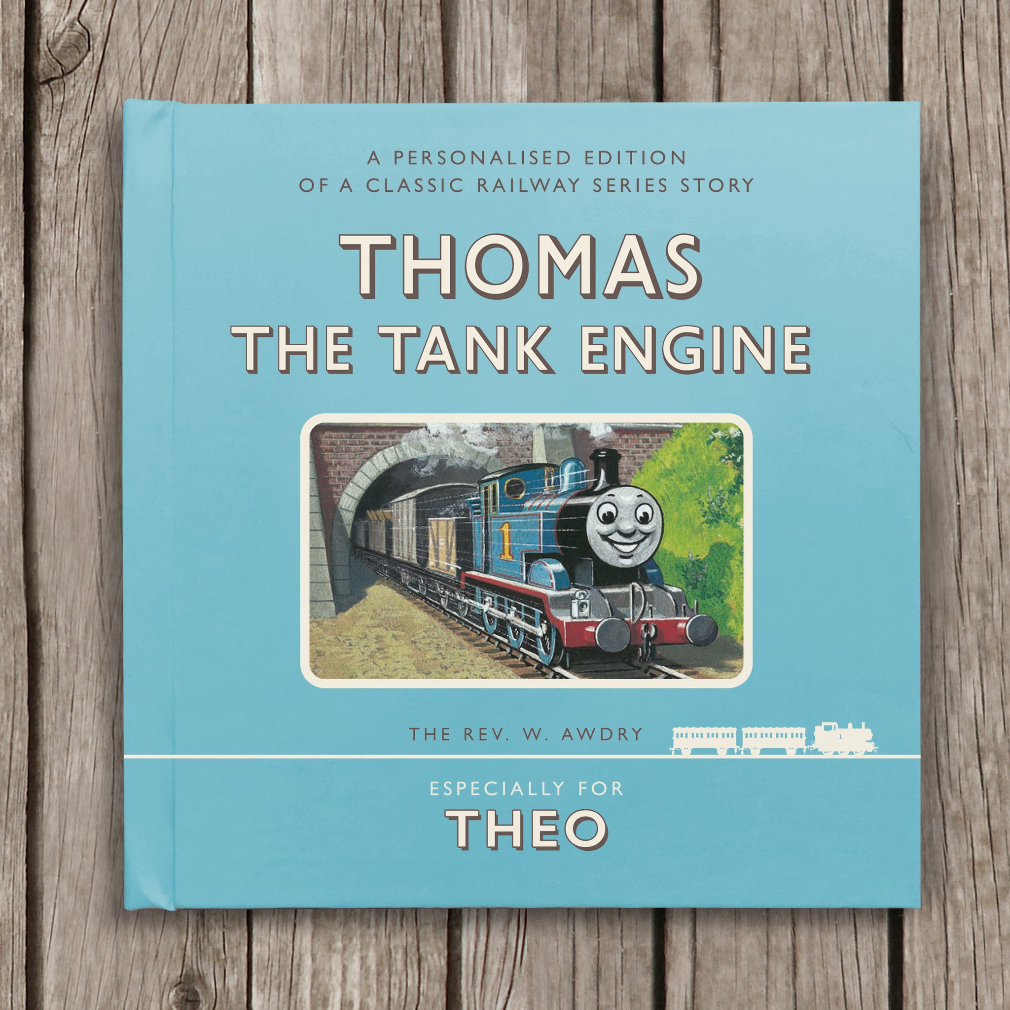 This beautiful bespoke book is a reproduction of the original first appearance of Thomas the Tank engine within Rev. W. Awdry's classic railways series of stories. Your little one's name appears at the header of each page and also on the original style cover. Each book is presented in a beautiful cream gift box which is foil embossed with Thomas the Tank Engine himself.