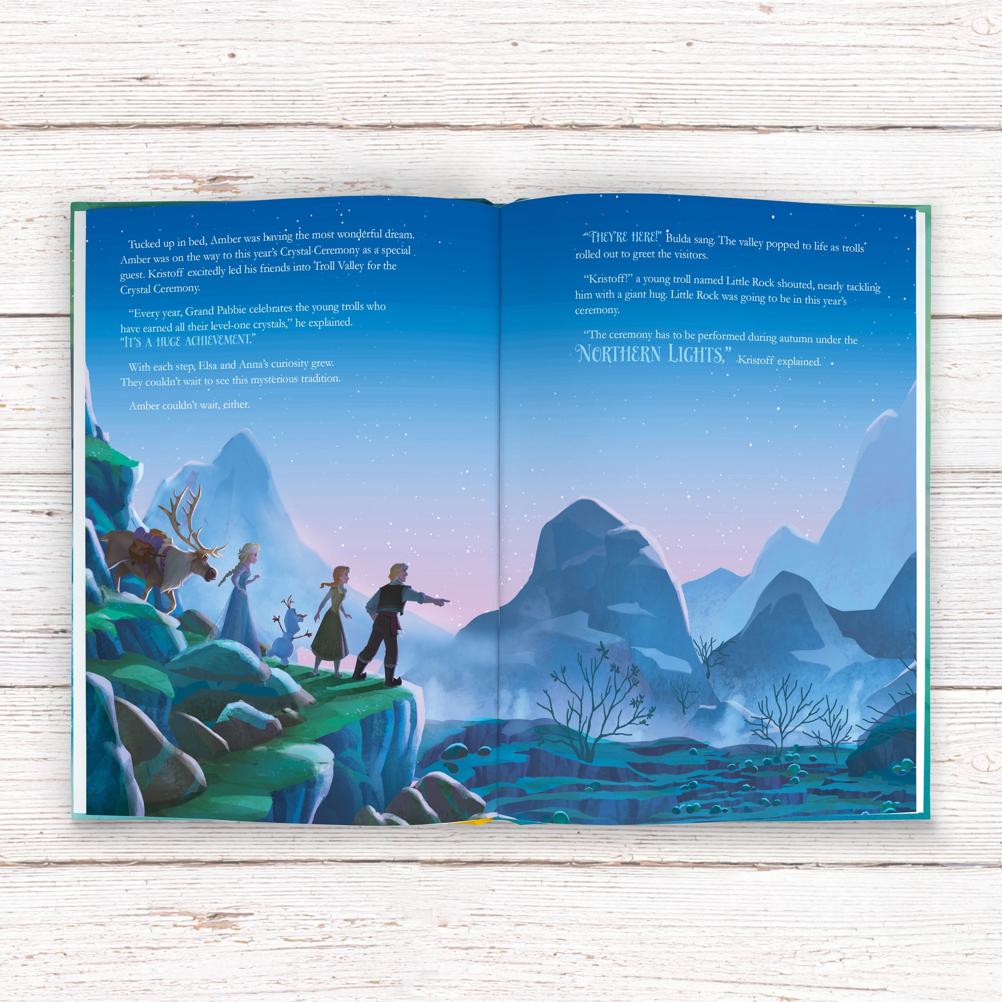 This brilliantly made book brings all your favourite Frozen characters together for a brand-new adventure! Queen Elsa and friends have been invited as special guests to the annual Troll crystal ceremony which is held underneath the northern lights! Along the way, they befriend a young troll named Little Rock, who is hoping to be in the ceremony, all he needs is one last crystal. This heart-warming story highlights the values of true friendship, as everyone pulls together to help Little Rock achieve his goals, and is perfect for any Frozen fan. The book will contain the recipient's name throughout the text, and you can also add their name and a personalised message to the first page of the book.