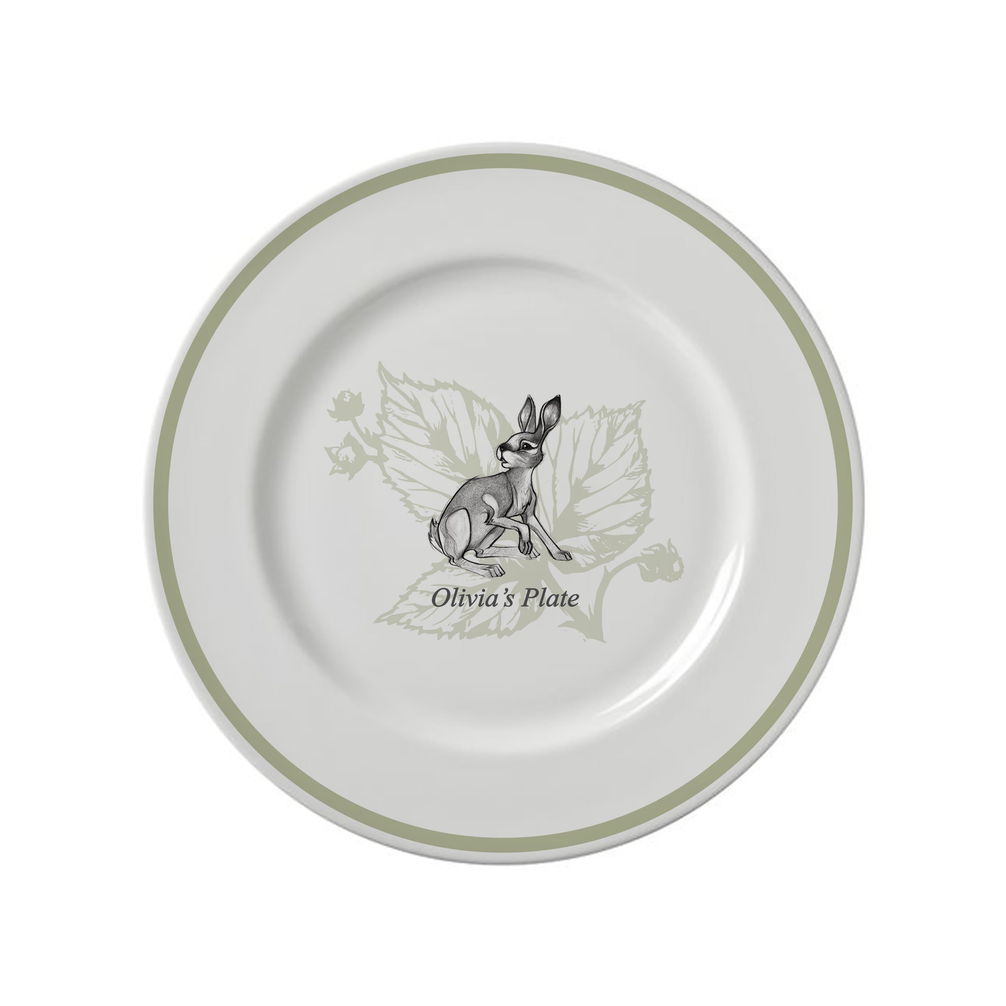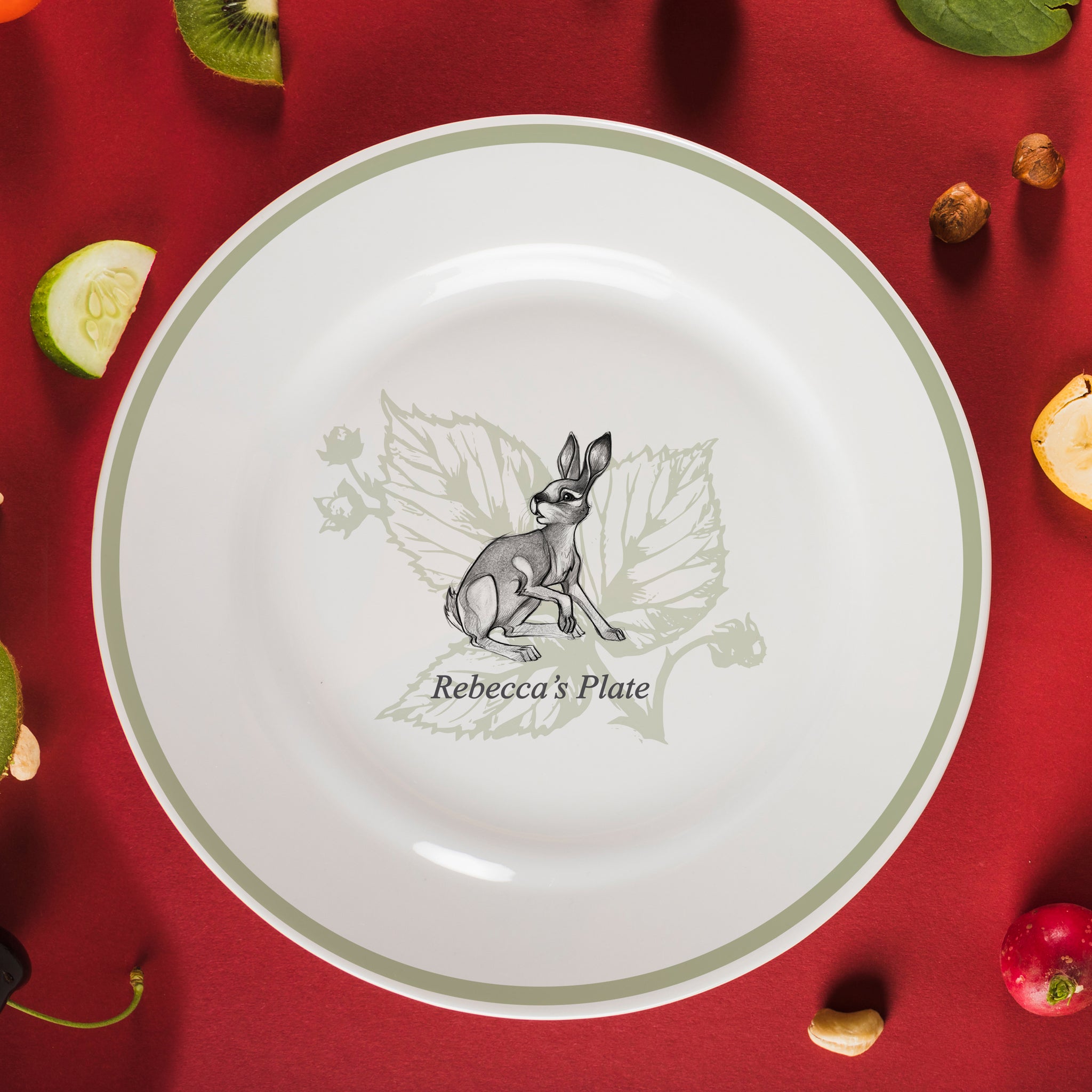 Personalise our beautiful Watership Down fine bone china 10 " plate with a name or message of up to 20 characters. Dish washer and microwave friendly. Dimensions: 25 x 25cm.